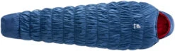 Elastische Kammernähte halten den Kunstfaser-Schlafsack hautnah am Körper. Um 25 % lässt er sich in der Breite dehnen. Die Konturfunktionskapuze umhüllt den Kopf zuverlässig, der erhöhte, diagonal geschnittene Fußbereich passt sich ideal an. PFC-frei.