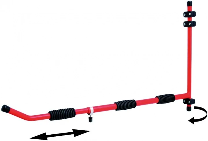 Längenverstellbarer Wandhalter für Kanadier und Zweierkajaks. Stufenlos verstellbar zwischen 55 und 85 cm. Schwenkbar.
