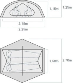 Das 3 Saisonzelt zu einem attraktiven Preis. Selbststehende Konstruktion, das Innenzelt wird mit Clips an den Stangen eingehängt. 2 Eingänge und 2 Apsiden, Windschutzrand am Innenzelt, einseitig aufrollbares Außenzelt, Netztaschen am Kopfende. Geringes Gewicht und schnell aufgebaut, in lauen Sommernächten kann man das Innenzelt auch prima solo nutzen.