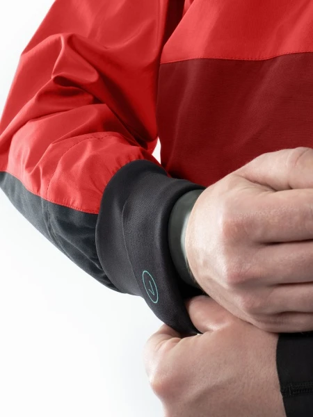 Ergonomisches Design für Paddler. Ein doppeltes Tunnelband an der Taille sorgt für einen dichten Abschluss. Ausgestattet mit dem „Double Pull“-System, bei dem ein Zug nach vorne an den Taillenlaschen gleichzeitig die Vorder- und Rückseite strafft. Reflektierende Paspeln an den Ärmeln helfen bei schlechten Sichtverhältnissen. Die Jacke wird mit einem kostenlosen Air4 Repair Kit geliefert.