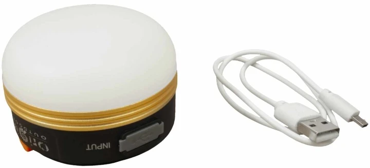 Durch das diffuse Kunststoffgehäuse entsteht ein angenehmes indirektes Licht, welches gleichmäßig 360° ausstrahlt. Als kleine Tischlampe sorgt sie wiederum für ein schönes Ambiente. Der ausklappbare Aufhängebügel mit Schnappverschluss bietet viele Möglichkeiten, die Lampe schnell und unkompliziert aufzuhängen. Der am Sockel verbaute Magnet ermöglicht es, die Lampe auch an metallischen Gegenständen zu befestigen. Sie verfügt über 2 Helligkeitsstufen und einen Stroboskop-Modus. Dank eingebautem Akku und Mikro-USB-Ausgang kann man sie auch als Powerbank nutzen. Über den USB-Eingang ist sie problemlos wiederaufladbar.