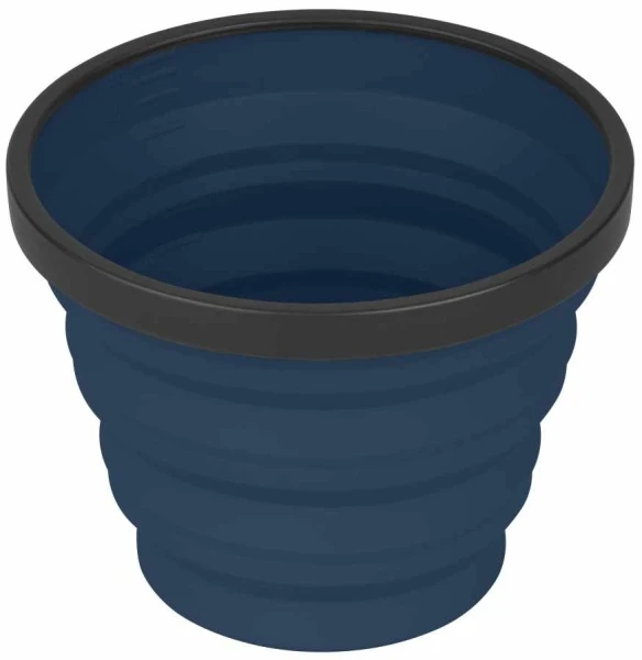 Faltbecher/Müslischüssel für unterwegs. Unzerbrechlich und klein verpackbar. Ein Ring am oberen Rand verleiht dem Becher Stabilität und ermöglicht angenehmes Trinken. Geignet für warme oder kalte Flüssigkeiten, freistehend.