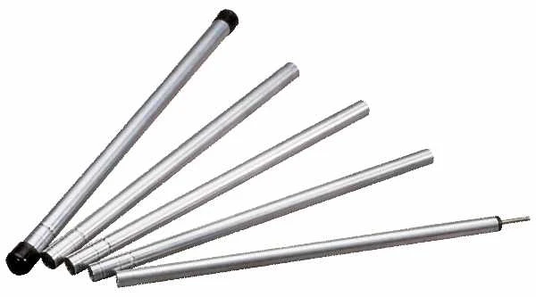 Stabile 5-teilige Aluminium-Aufstellstange. Die einzelnen Segmente sind ineinander Nestbar, dadurch leicht und minimales Packmaß.